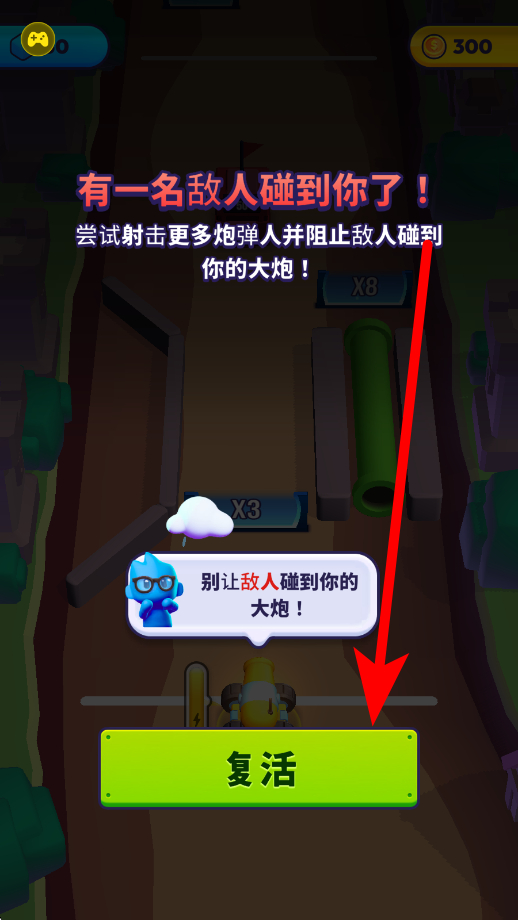 4、玩家失敗復(fù)活時,當(dāng)被敵人碰到導(dǎo)致失敗,可點擊復(fù)活按鈕,重新回到對戰(zhàn)中,繼續(xù)參與射擊對戰(zhàn),爭取扭轉(zhuǎn)局勢。