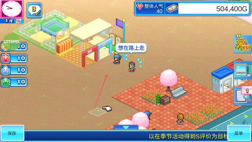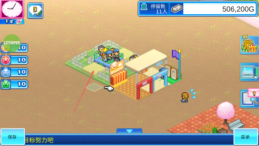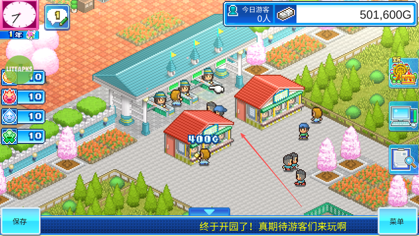 1、開(kāi)園前,合理規(guī)劃游樂(lè)園布局,像圖中那樣設(shè)置好游樂(lè)設(shè)施、商店等區(qū)域,吸引游客。