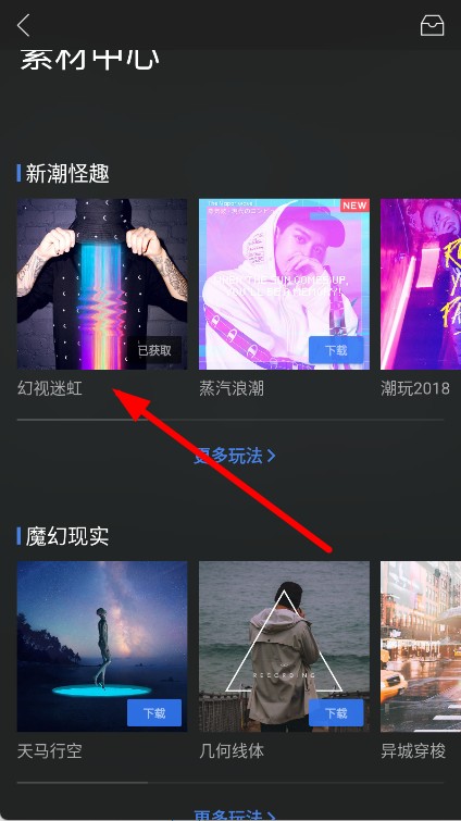 3、找到新潮怪趣分類下的幻視迷虹素材并點(diǎn)擊,進(jìn)入該素材的詳情頁(yè)面。
