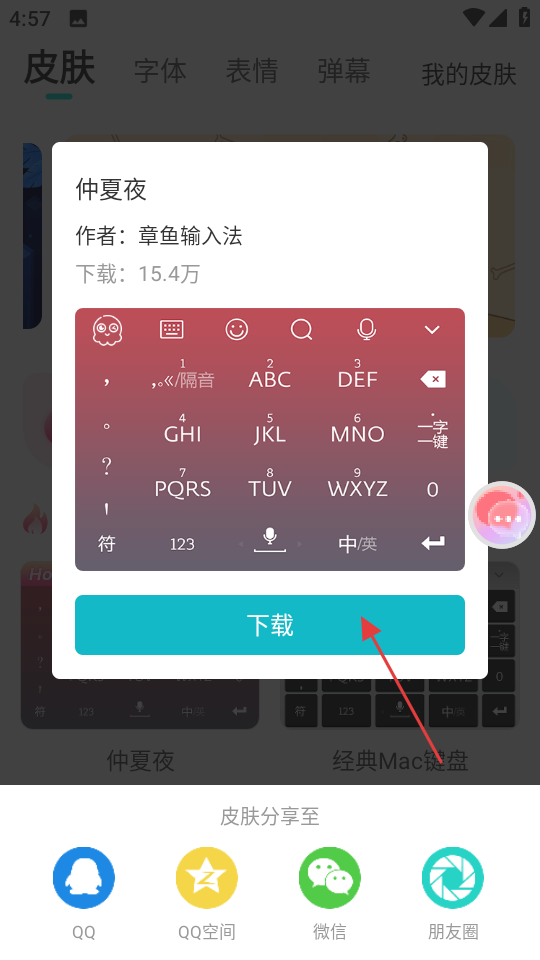 4、點(diǎn)擊選中的皮膚后,在彈窗中點(diǎn)擊下載,下載后即可更換該皮膚。