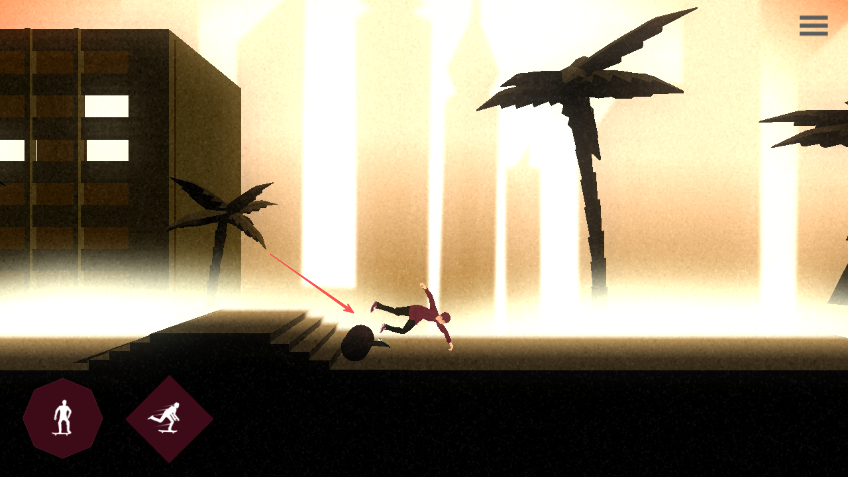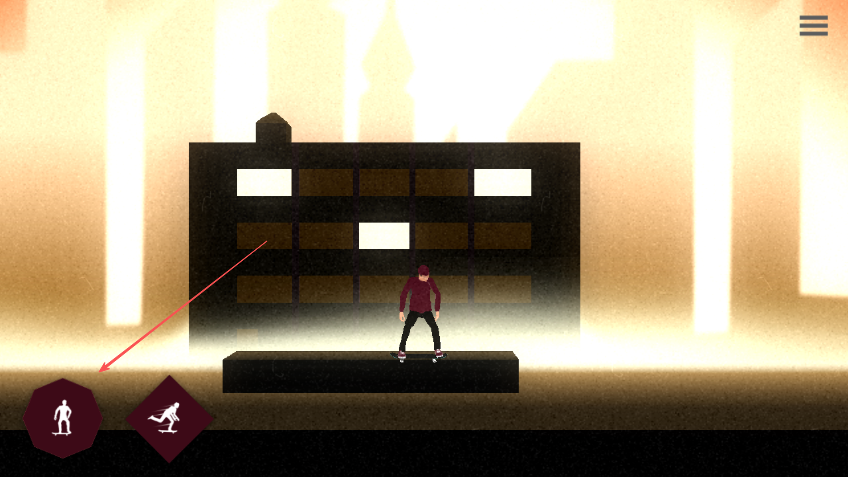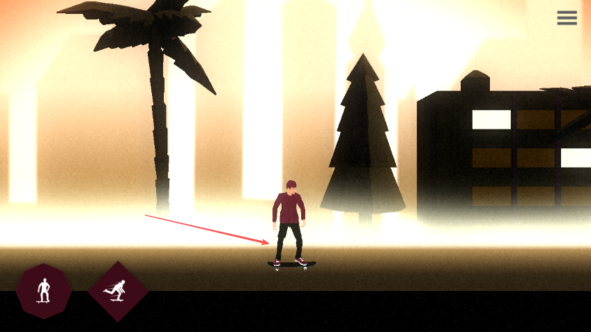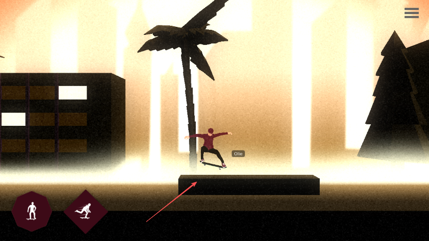 3、利用這兩個按鈕的組合,控制角色在不同的平臺和地形上做出各種滑板技巧,比如在平臺邊緣做出滑行動作。
