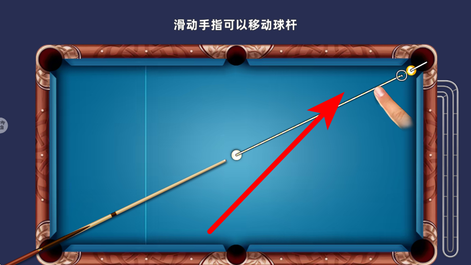 1、新手玩家移動(dòng)球桿時(shí),通過滑動(dòng)手指來移動(dòng)球桿,調(diào)整球桿的位置,為后續(xù)的擊球操作做好準(zhǔn)備,以便精準(zhǔn)擊打臺(tái)球。