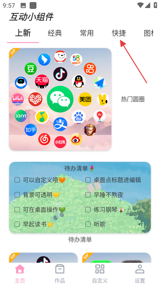 1、在互動小組件頁面,點擊快捷選項,切換到快捷相關組件展示界面。