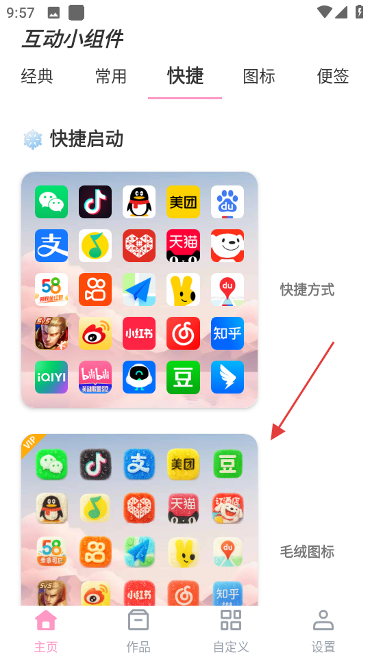 2、在快捷界面,點擊毛絨圖標,進入毛絨圖標設置頁面。