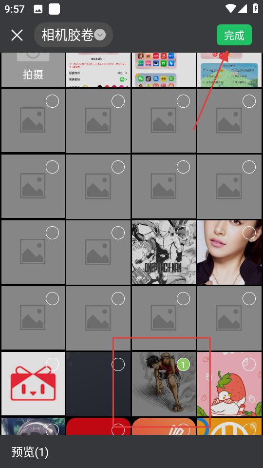 4、在相機膠卷中選擇好圖片后,點擊完成,完成圖標替換相關操作。