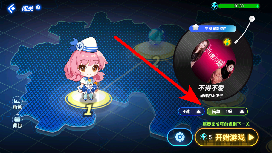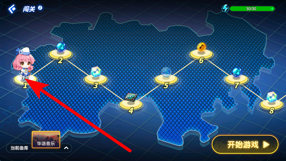 2、選擇關卡需在闖關地圖中,挑選想要挑戰(zhàn)的關卡,確定后進入該關卡的歌曲選擇界面,為接下來的音樂演奏做好準備。