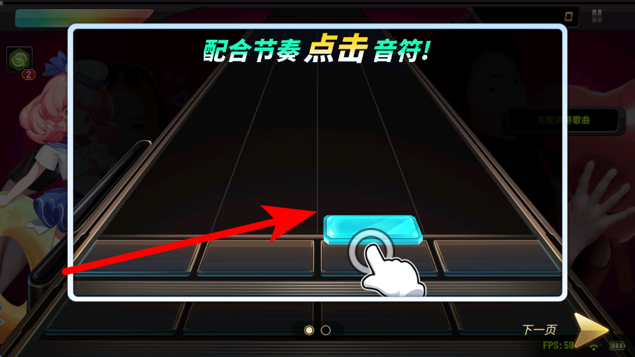 1、節(jié)奏點擊操作:屏幕下方的軌道會有音符隨著音樂的節(jié)奏落下,玩家需要在音符到達指定位置時準確點擊,通過精準的時機把握獲得高分。