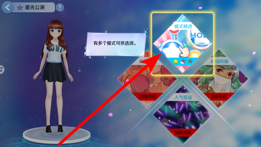 3、挑選演出模式要在星光公演界面,從多個(gè)可供選擇的模式中,挑選想要體驗(yàn)的演出模式,之后進(jìn)入該模式的演出環(huán)節(jié)。