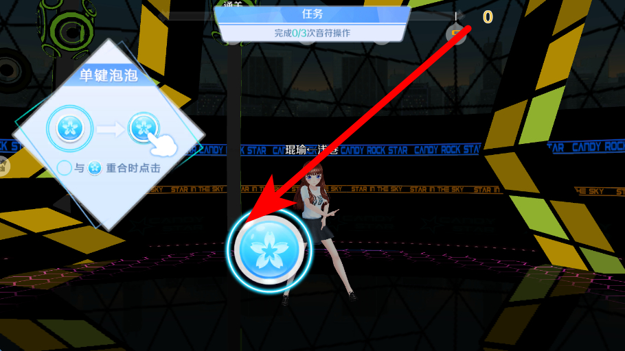 4、跟隨節(jié)奏操作時(shí),在演出過(guò)程中,根據(jù)音樂(lè)的節(jié)奏,進(jìn)行相應(yīng)的音符操作,如點(diǎn)擊單鍵泡泡等,感受音樂(lè)與舞蹈結(jié)合的游玩樂(lè)趣。