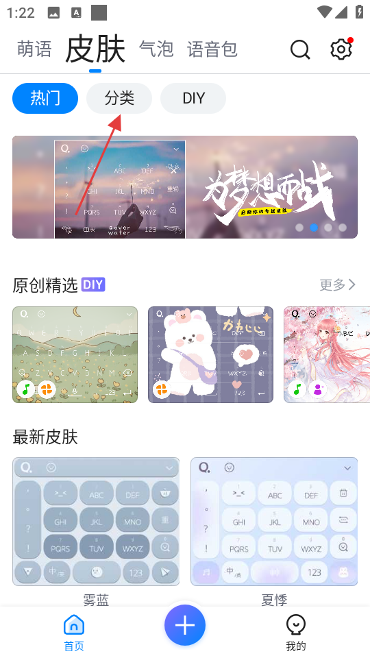 1、進入QQ輸入法,在皮膚頁面,點擊分類。