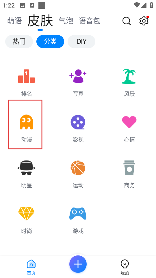 2、在分類頁面中,點擊喜歡的,如動漫分類圖標。