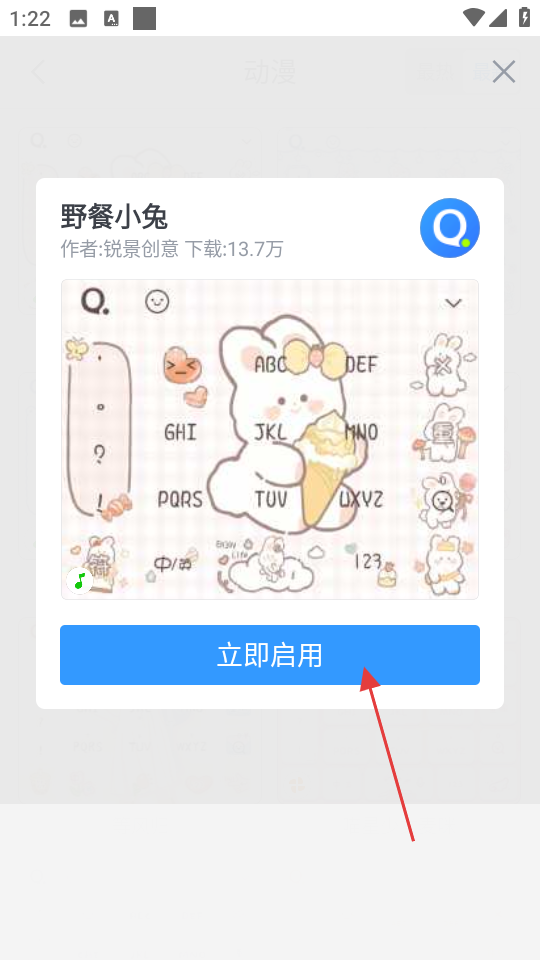 4、進入野餐小兔皮膚詳情頁,點擊立即啟用按鈕更換該皮膚。