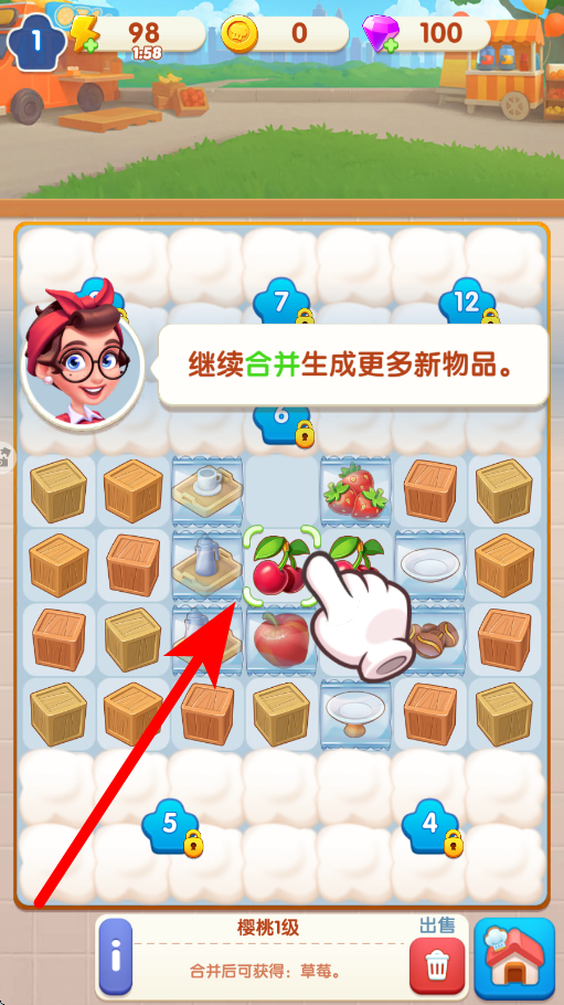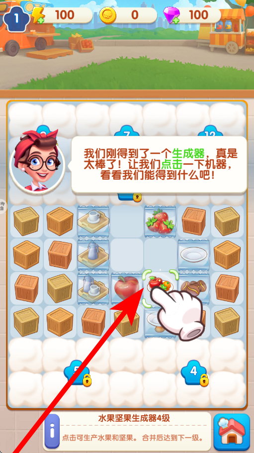 2、使用生成器需在生成器界面,點擊生成器,借助生成器來獲取物品,為后續(xù)的合并等操作提供素材,推動經(jīng)營流程的進行。