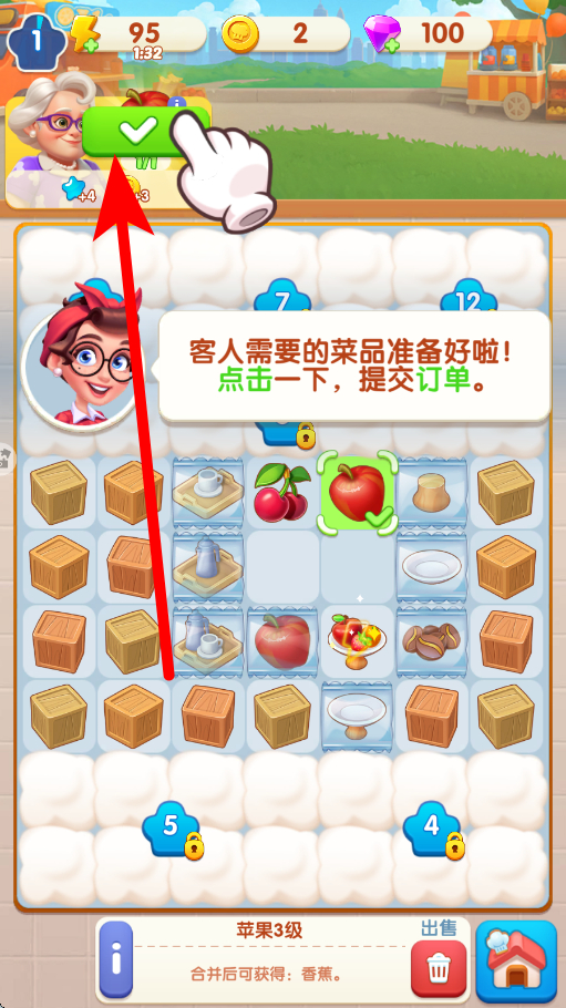 4、提交訂單時,在客人訂單準備好后,點擊相應(yīng)的提交按鈕,提交訂單,完成經(jīng)營中的服務(wù)環(huán)節(jié),獲取經(jīng)營的成果與獎勵。