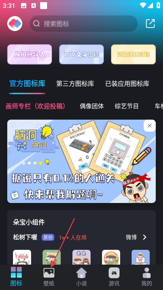 1、打開軟件,在底部導(dǎo)航欄點擊壁紙選項,進入壁紙相關(guān)頁面。