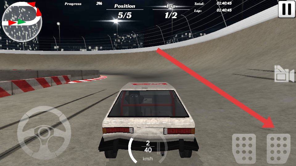 1、在賽車行駛過程中,點(diǎn)擊箭頭指向的右側(cè)操作按鈕,可控制賽車加速,助力賽車在賽道上快速前進(jìn),提升比賽中的速度優(yōu)勢(shì)。