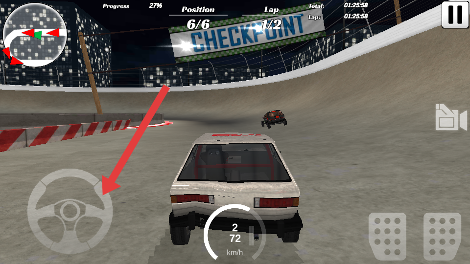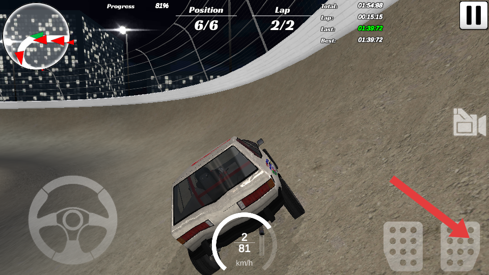 4、在賽車行駛到合適路段時(shí),點(diǎn)擊箭頭指向的右側(cè)操作按鈕,再次控制賽車加速,全力沖刺,爭(zhēng)取在比賽中獲得更好的名次。