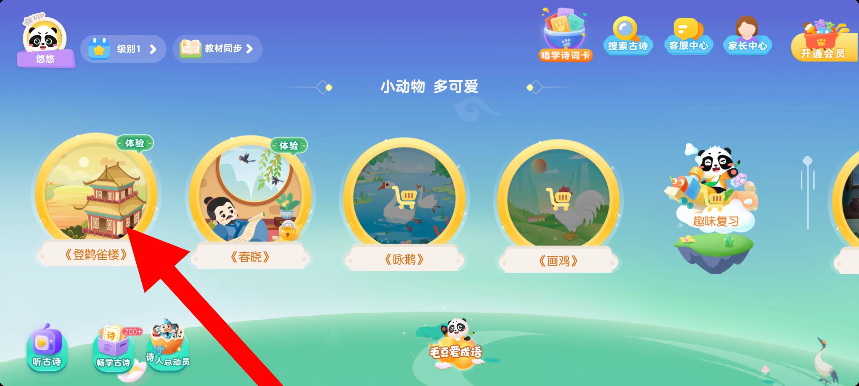 2、在主界面找到圖標(biāo),點(diǎn)擊進(jìn)入該古詩(shī)學(xué)習(xí)頁(yè)面。