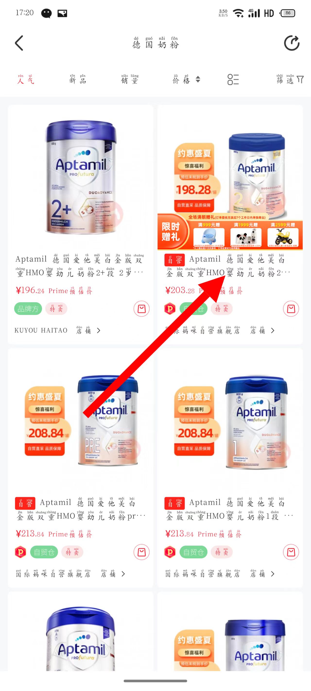 3、在德國奶粉列表頁,選擇想要的奶粉商品,點(diǎn)擊進(jìn)入商品詳情頁。
