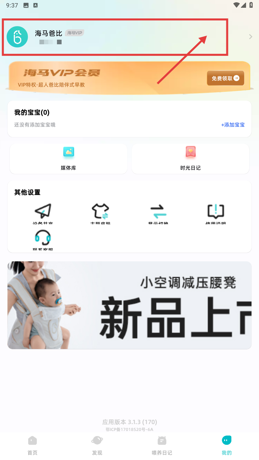 1、打開海馬爸比應用,點擊底部我的選項,進入個人中心頁面。