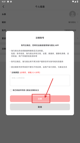 4、在注銷賬號彈窗中,按要求填寫注銷原因等信息后,點擊注銷按鈕,進行賬號注銷操作。