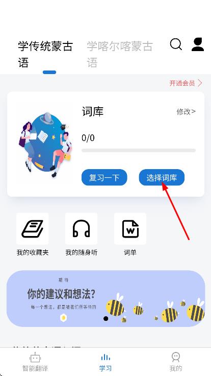 2、在學(xué)習(xí)頁(yè)面,點(diǎn)擊選擇詞庫(kù),進(jìn)入詞庫(kù)選擇界面。