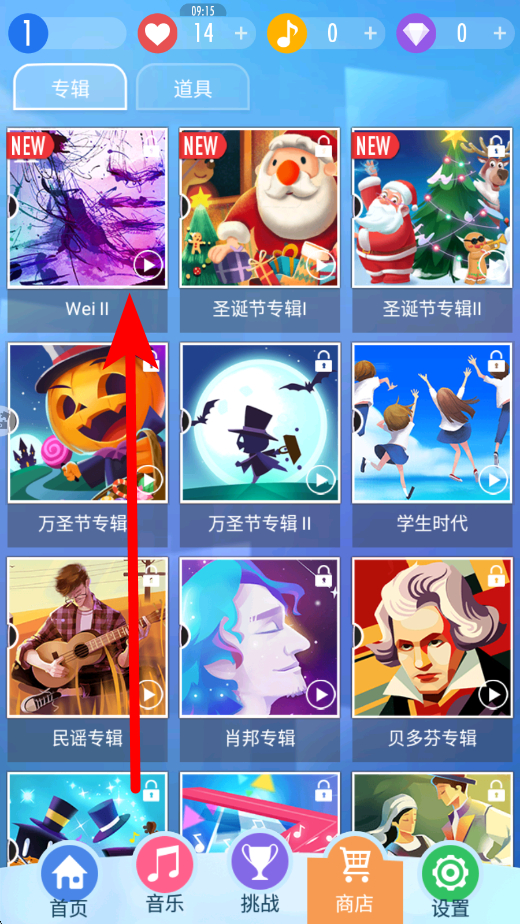 4、前往商店后,能看到眾多音樂專輯,如萬圣節(jié)專輯、肖邦專輯等,可選擇購買喜歡的專輯,獲取更多可彈奏的音樂。