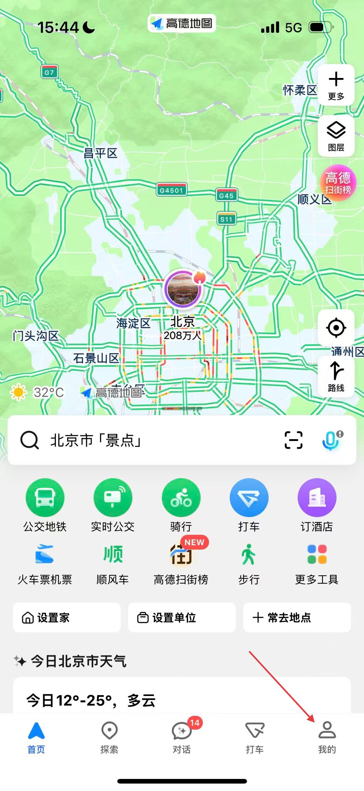 1、進入高德地圖首頁,點擊我的選項,進入個人中心頁面。