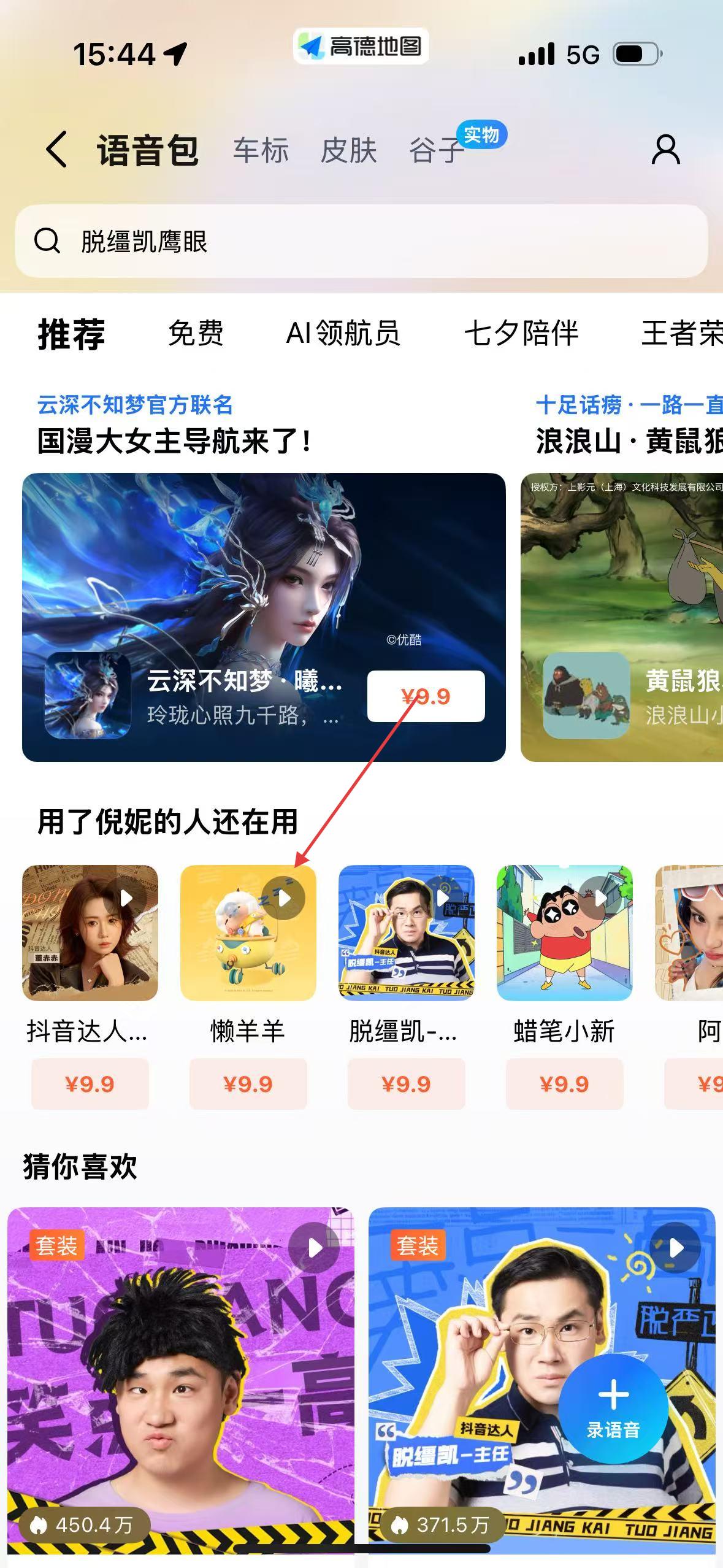 3、在語音包頁面,挑選心儀的語音包,比如懶羊羊語音包,點擊進入該語音包詳情頁。