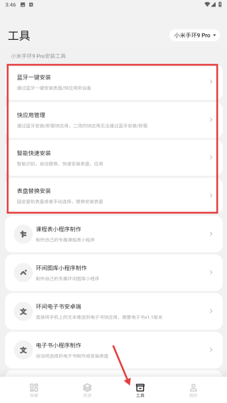 3、在工具欄當(dāng)中有藍(lán)牙一鍵安裝、快應(yīng)用管理等功能。