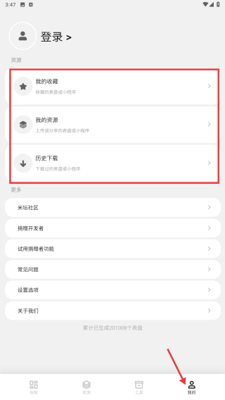 4、在我的頁面當(dāng)中有我的收藏功能、我的資源功能和歷史下載功能。