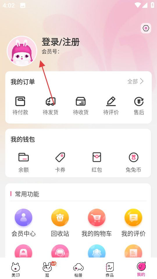 2、在個人中心頁面,點擊登錄注冊區(qū)域,進(jìn)入登錄頁面。