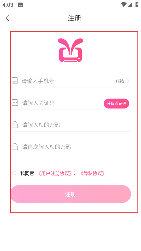 4、在注冊頁面,依次輸入信息勾選協(xié)議后,點擊注冊按鈕完成注冊。