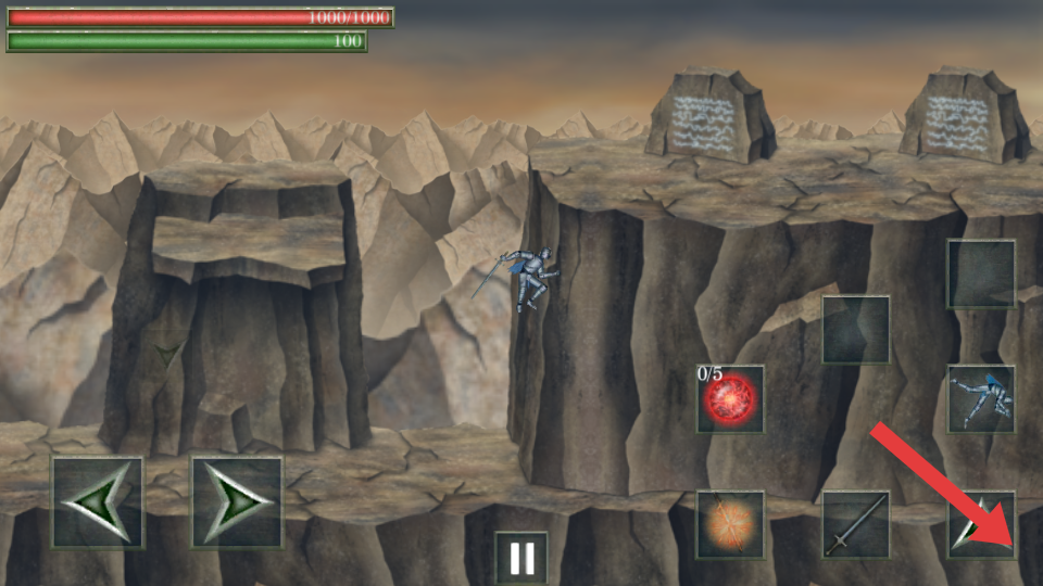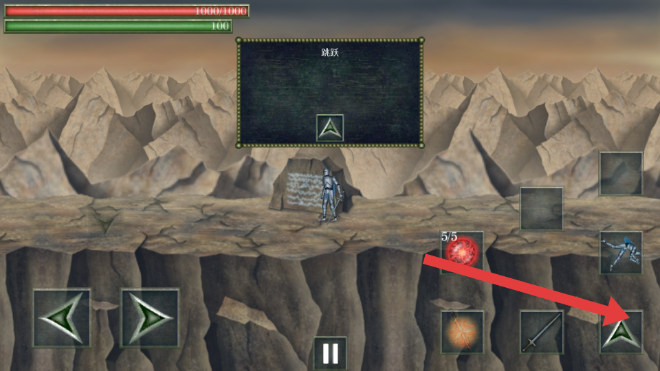 1、在需要跨越地形時(shí),點(diǎn)擊箭頭指向的跳躍按鍵,操控角色進(jìn)行跳躍,可越過懸崖等障礙,到達(dá)新的區(qū)域。