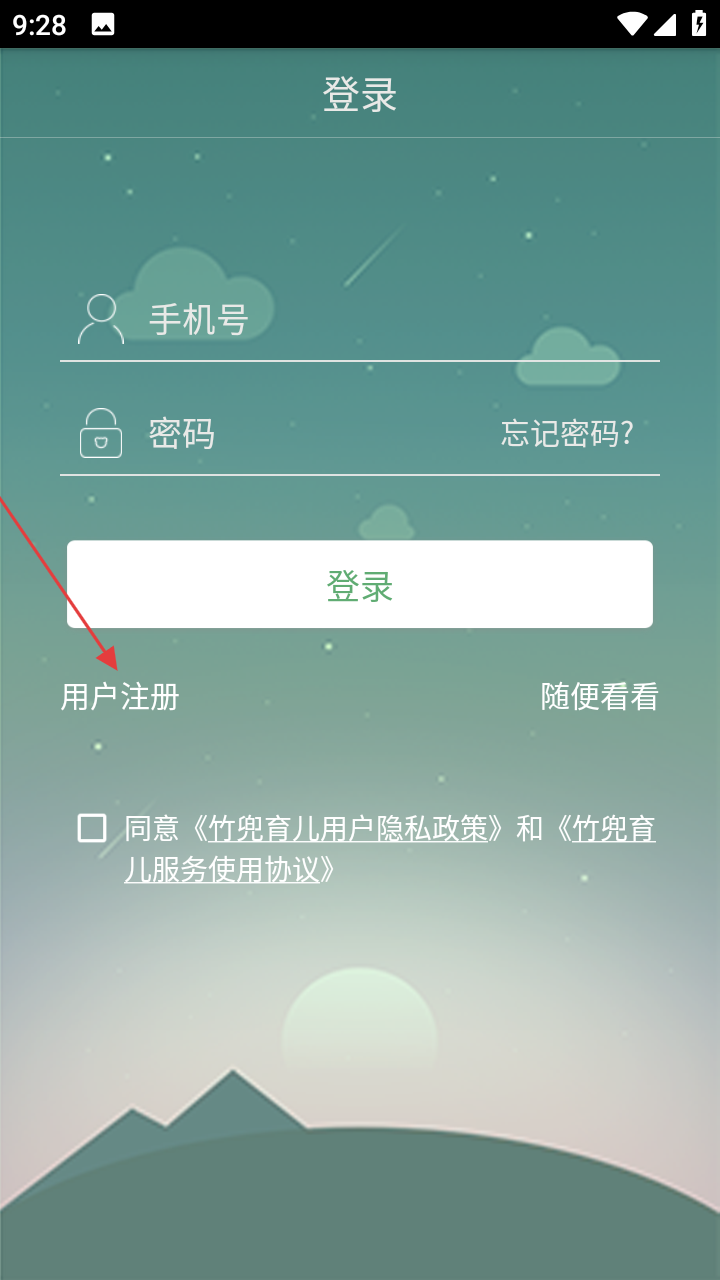 3、在登錄界面,點擊用戶注冊選項,進入注冊賬號頁面。