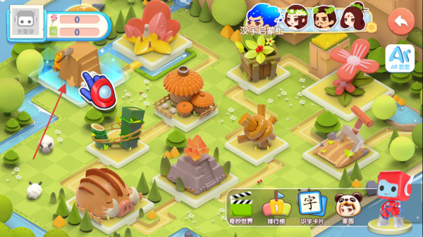 2、在漢字啟蒙上場景中,跟隨指引點(diǎn)擊相應(yīng)建筑,推進(jìn)內(nèi)容。
