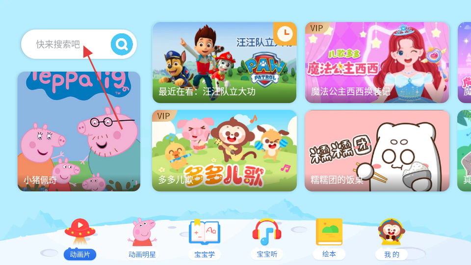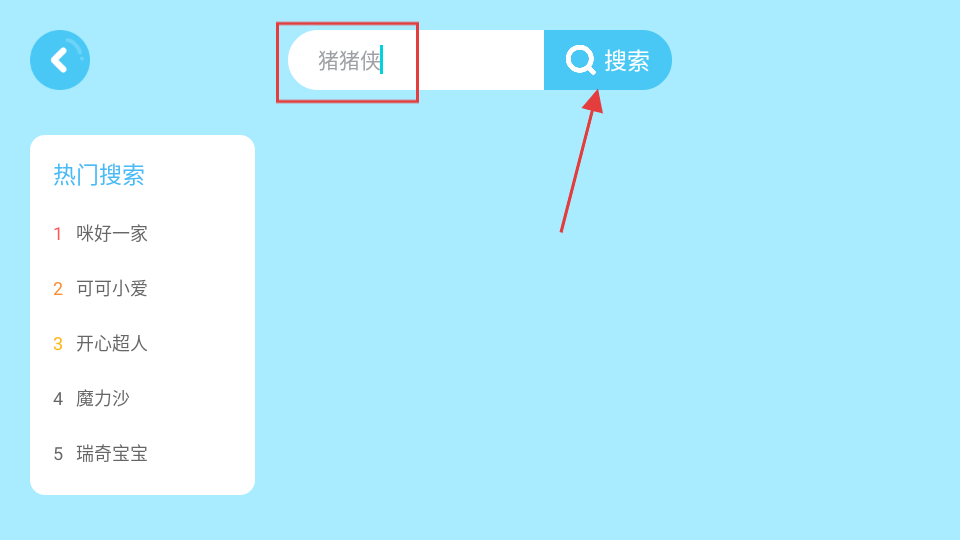 2、在搜索框中輸入想看的動畫片,如豬豬俠,然后點擊搜索按鈕。