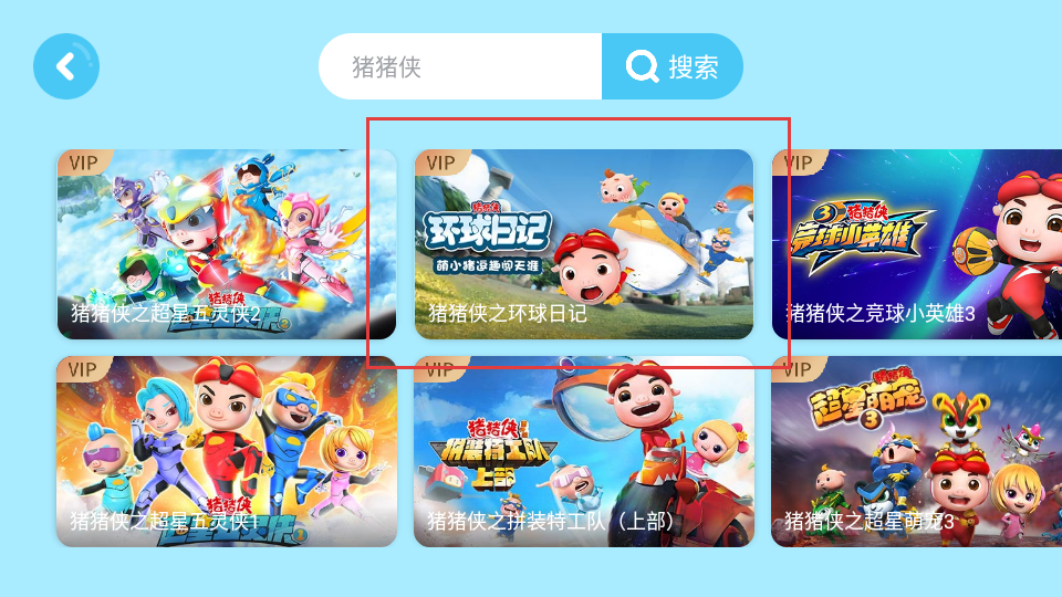 3、在搜索結(jié)果中,選擇想要觀看的相關(guān)內(nèi)容,比如豬豬俠之環(huán)球日記。