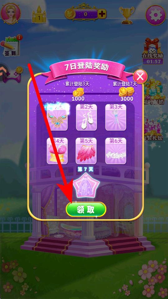 2、在作品中,會(huì)有七日登陸?yīng)剟?lì),達(dá)到累計(jì)登陸天數(shù)后,點(diǎn)擊“領(lǐng)取”按鈕,可獲取對(duì)應(yīng)的獎(jiǎng)勵(lì),這些獎(jiǎng)勵(lì)能用于后續(xù)的美妝裝扮。