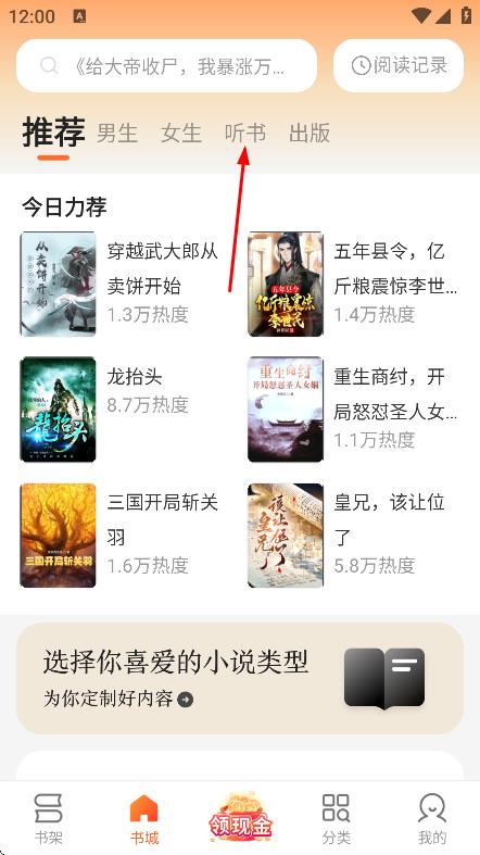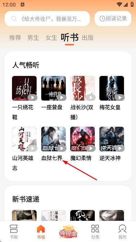 1、在軟件首頁,點擊聽書,進入聽書頁面。