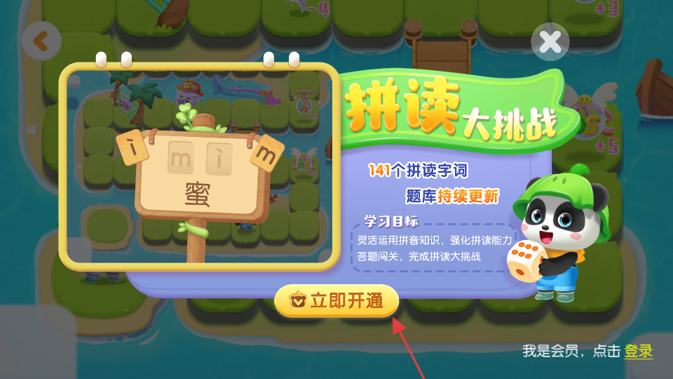 4、若要參與拼讀大挑戰(zhàn),點(diǎn)擊立即開(kāi)通按鈕,開(kāi)通相關(guān)服務(wù)后即可參與。