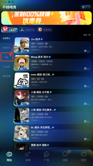 2、在頁面中選擇聲優(yōu)分類,瀏覽該分類下的陪玩人員或服務(wù)。