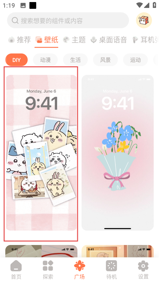 3、在壁紙界面,選擇喜歡的DIY壁紙,如吉伊卡哇。