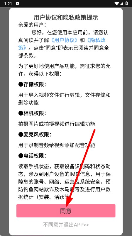 1、打開APP,在用戶協(xié)議和隱私政策提示彈窗中點(diǎn)擊同意,進(jìn)入主界面。