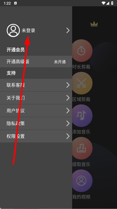2、點(diǎn)擊主界面左上角三條橫線的菜單按鈕,在彈出的側(cè)邊欄中選擇未登錄選項(xiàng)。