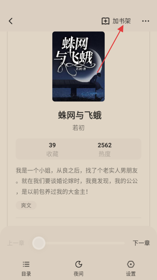 4、在菜單功能頁面,點(diǎn)擊加書架,可將蛛網(wǎng)與飛蛾加入書架。