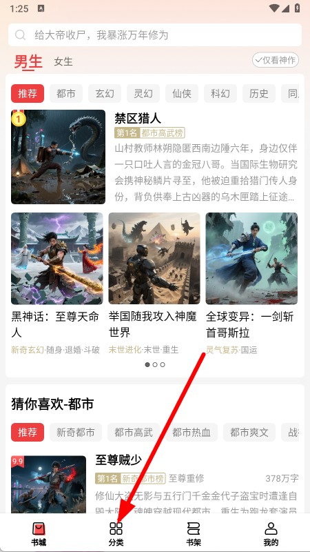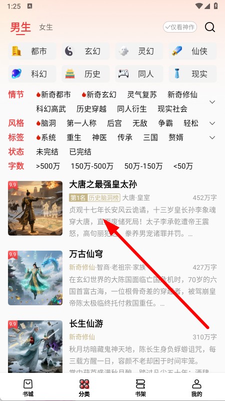 2、在小說(shuō)分類(lèi)頁(yè)面,選擇感興趣的小說(shuō)類(lèi)別,并點(diǎn)擊對(duì)應(yīng)的小說(shuō)。
