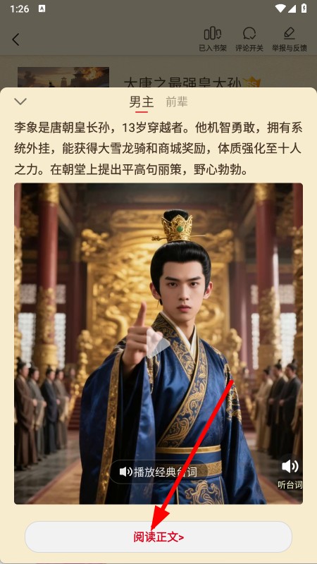 4、查看完介紹后,點(diǎn)擊閱讀正文按鈕,即可開(kāi)始閱讀該小說(shuō)的正文內(nèi)容。