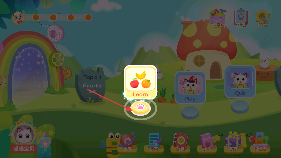 1、打開喵喵少兒英語,點擊Learn按鈕,進入學(xué)習(xí)流程。