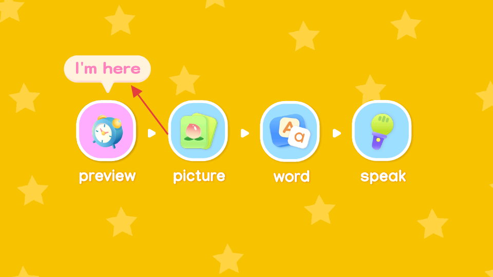 2、在學(xué)習(xí)流程中,點擊I'mhere先進行preview環(huán)節(jié),開啟學(xué)習(xí)準備。